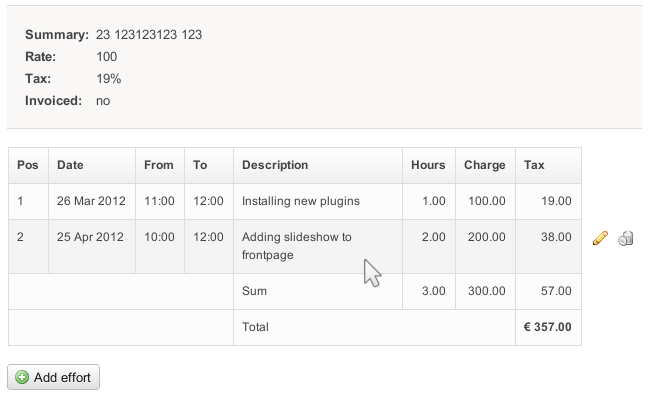invoice, effort, role and event in the above example.